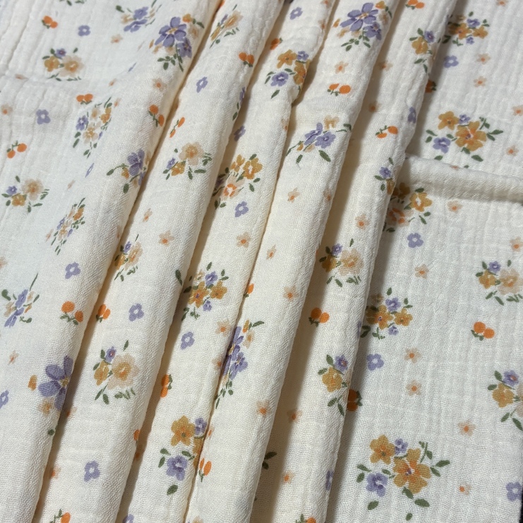 100% COTTON DOUBLE LAYER CRINKLE PLAIN PRINTED